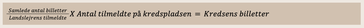 For at fordele billetterne så retfærdigt som muligt, beregnes kredsens antal af billetter ud fra antallet af tilmeldte på kredspladsen.