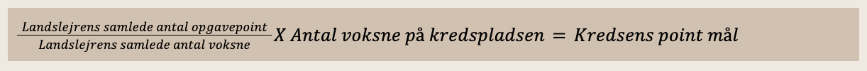 For at fordele opgaverne så retfærdigt som muligt mellem både store og små kredse, beregnes kredsens opgavepoint ud fra antallet af tilmeldte voksne på kredspladsen.