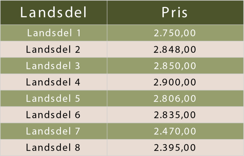 Se priser i tabellen: